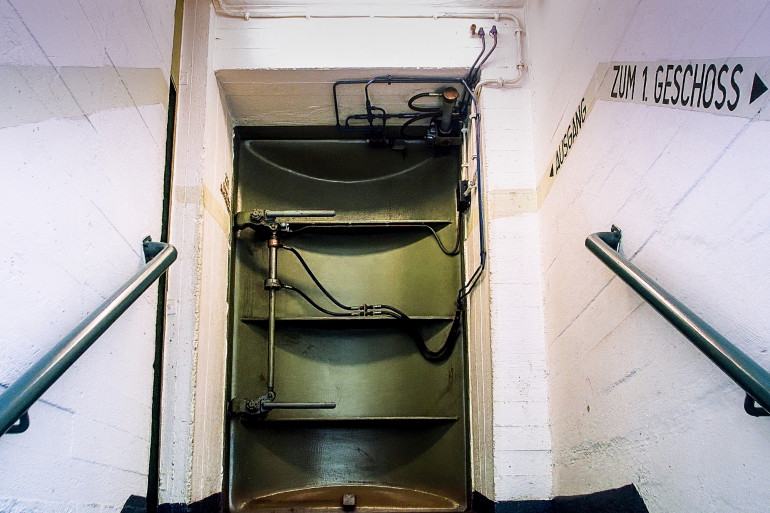 "Ça a été construit pour résister à une attaque nucléaire. On entre par une de ces quatre portes. Celle-ci doit protéger de l'explosion et l'autre empêcher les gaz, les fumées, et les émissions radioactives d'entrer. Il y a des purificateurs d'air, d'eau, des groupes électrogènes. Dans le bunker, l'électricité peut tourner pendant 30 jours", détaille le chargé de maintenance.