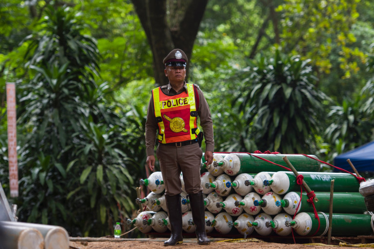 Douze enfants et leur entraîneur sont encore coincés dans une grotte inondée en Thaïlande depuis 13 jours. Un plongeur venu leur apporter des bouteilles d'oxygène est décédé vendredi 6 juillet sur le chemin du retour. "Il n'avait plus assez d'oxygène" pour lui et a perdu conscience, a expliqué le vice-gouverneur de la province de Chiang Rai, Passakorn Boonyaluck.