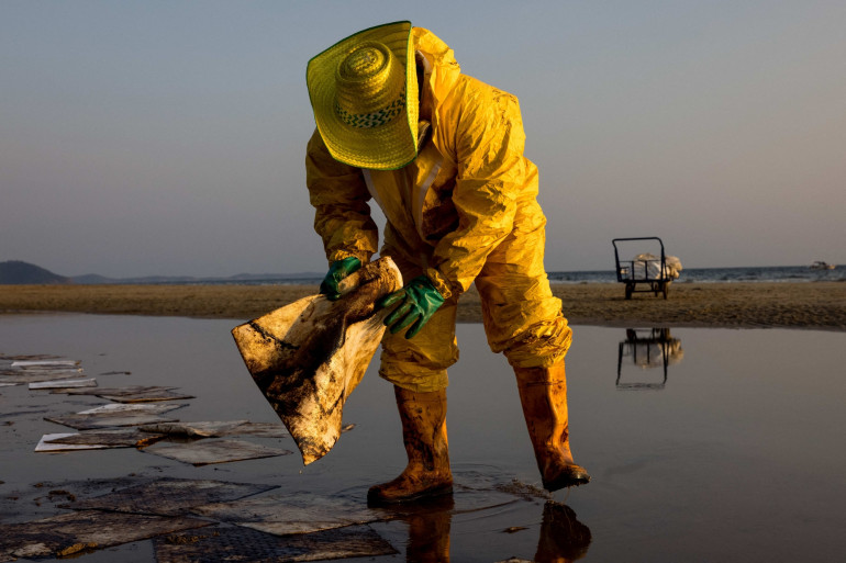 Cette vaste marée noire devrait continuer à s'échouer sur le littoral dans les jours qui viennent en raison du renforcement du vent.