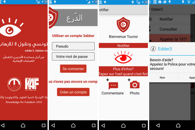 En Tunisie, une application pour smartphone sert de bouclier contre le terrorisme. "Bouclier", c'est la traduction littérale d'Edder3, cette invention mise au point par trois Tunisiens étudiants à l'Ecole nationale d'ingénieurs de Tunis (ENIT). L'idée leur est venue après les attentats du Bardo, le 18 mars, et de Sousse, le 26 juin dernier. Son but : créer un système d'alerte en cas d'acte suspect pouvant avoir trait au terrorisme et "impliquer tout le peuple tunisien dans la lutte contre le terrorisme", résume l'un de ses développeurs, Yassine Selmi, 23 ans, auprès du site Géopolis.