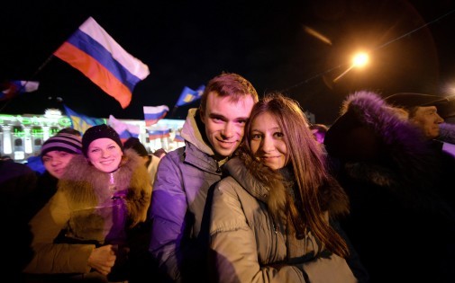 Des milliers de personnes sont descendues dimanche soir dans les rues de la capitale de la Crimée, Simféropol, et de Sébastopol qui abrite la flotte russe de la mer Noire, pour fêter la victoire jouée d'avance du rattachement de la péninsule à la Russie, ont constaté des journalistes de l'Agence France Presse.