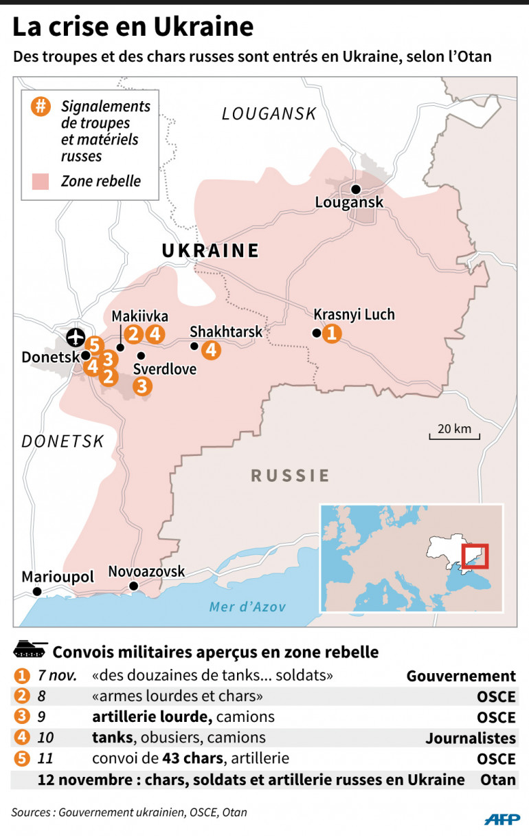 Localisation de troupes et matériels russes dans l'est de l'Ukraine.