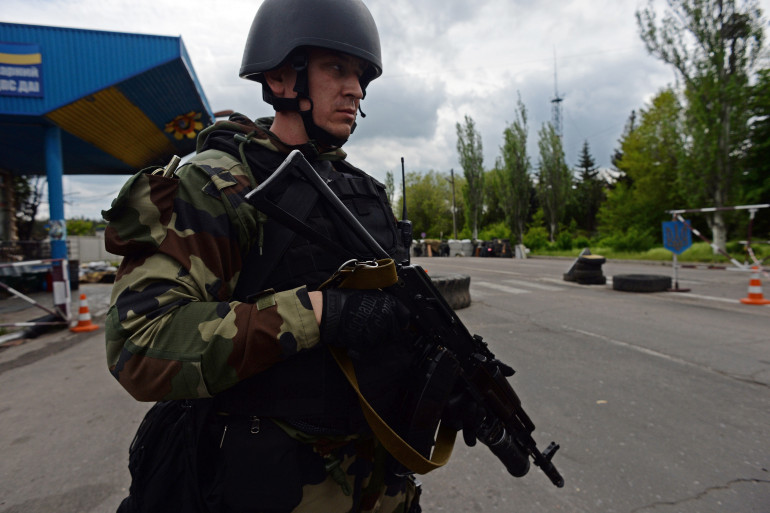 Un soldat ukrainien garde un point de contrôle à proximité de Slaviansk, le 5 mai 2014 (image d'illustration)
