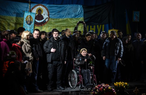 16h49: L'opposante emprisonnée Ioulia Timochenko a été libérée. A peine sortie de prison, la femme à la natte s'est rendue sur le Maïdan à Kiev. "La dictature est tombée" en Ukraine, s'est félicitée l'ex-Premier ministre Ioulia Timochenko dans sa première déclaration depuis sa libération, sur le site internet de son parti. "La dictature est tombée non grâce aux hommes politiques et aux diplomates, mais grâce aux gens qui sont sortis dans la rue, qui ont réussi à protéger leurs familles et leur pays".