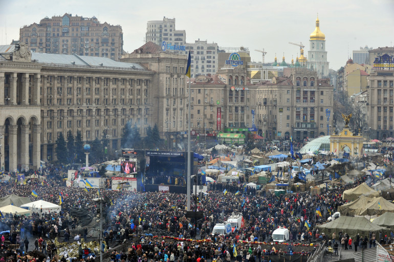 Le Maïdan est occupé depuis trois mois par des milliers d'opposants, qui y ont installé leurs tentes autour d'un podium, et qui l'ont entouré de barricades pour en protéger l'accès.