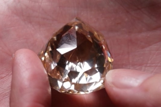 Ce diamant de 137 carats, taillé en poire, long comme le pouce à la teinte jaune pâle, presque miel, est traversé de reflets verts ou dorés selon la lumière. Cette pierre ancienne a été taillée au XVIIe siècle, elle a vu défiler les siècles, les trônes, les guerres.
