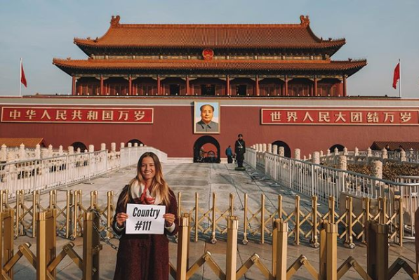 Lexie Alford à la Cité Interdite à Pékin en Chine, le 111ème pays qu'elle a visité
