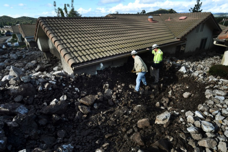 Une coulée de boue a englouti plusieurs maisons dans un quartier de Ventura, au nord de Los Angeles, où une centaine de maisons avaient été évacuées quelques heures plus tôt.