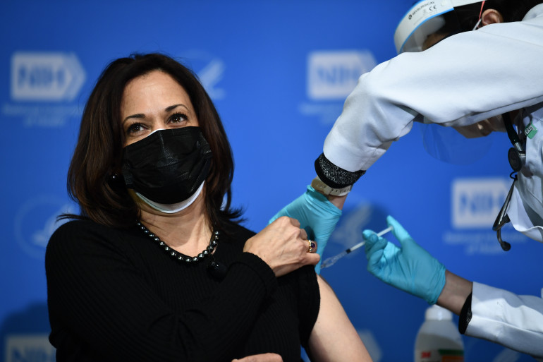 Kamala Harris se fait vacciner contre le coronavirus le 26 janvier 2021.