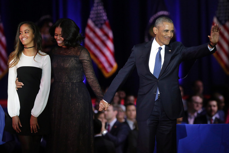Barack Obama a fait son discours d'adieu à Chicago en présence de sa femme Michelle, et sa fille aînée Malia.