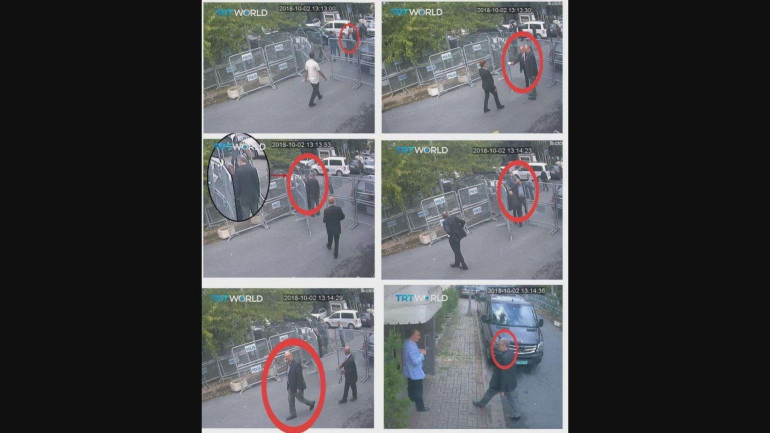 Des images de vidéosurveillance sont publiées dans la presse turque le 10 octobre. On y voit le journaliste entrer dans le consulat vers 13h14. Un van noir est visible, garé à proximité. Les images suivantes montrent un van entrer dans le consulat puis en ressortir et se rendre à 15h08, selon 24 TV, à la résidence du consul toute proche.