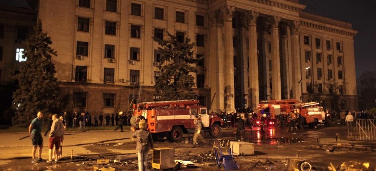 Dans la soirée, les pro-russes se sont barricadés dans la Maison des Syndicats. Mais le bâtiment a pris feu dans des circonstances qui restent encore floues, alors que le bâtiment était assiégé par les pro-Européens. Au total, 31 personnes sont mortes des suites d'une intoxication à l'oxyde de carbone ou en sautant par les fenêtres, d'après le ministère de l'Intérieur ukrainien.