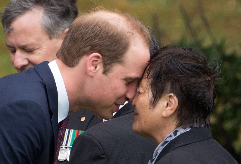 Le prince William reçoit un "hongi", salut traditionnel maori