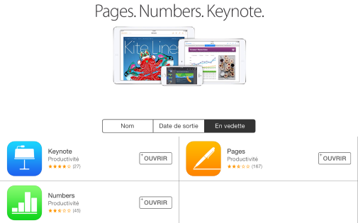 iWork est livré gratuitement à l'achat des derniers ordinateurs, smartphones et tablettes d'Apple.