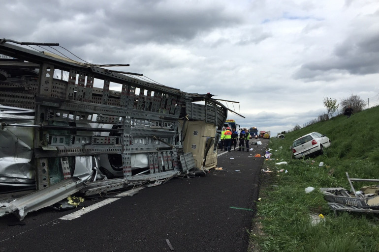 Un camion a traversé le terre plein central de l'autoroute A13 ce lundi 25 avril vers 13 heures et a percuté entre 6 et 9 véhicules et un autre poids-lourd. Selon un bilan encore provisoire, deux personnes se trouvent en urgence absolue, dont le chauffeur de poids lourd. Elles ont été évacuées par hélicoptère vers l'hôpital, peu après 15h.