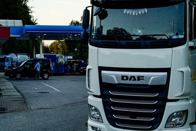 Un camion sur un parking d'autoroute ( Photo d'illustration )