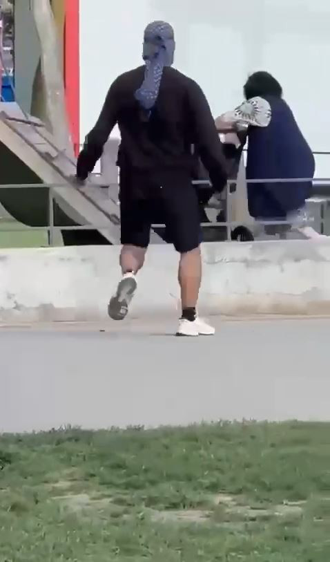 Dans les vidéos de l'attaque, on peut voir l'assaillant tenter à plusieurs reprises d'attaquer des enfants dans une aire de jeux