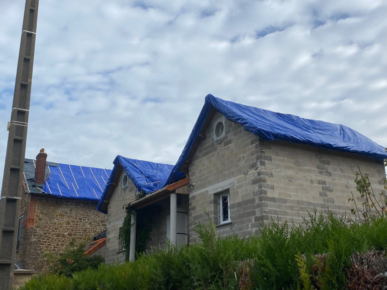 Le choc est passé mais les sinistrés font face maintenant aux conséquences de ce violent épisode météorologique. "Les deux cheminées sont tombées. J'ai pris trois semaines de mes congés qui me restaient pour déblayer", raconte Albert, un habitant de la commune. Une bâche bleue recouvre sa maison, mais avec la pluie des derniers jours, son premier étage prend l'eau.