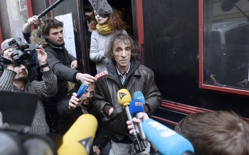 "Jacky", porte-parole de Dieudonné; devant le théâtre de la Main d'Or à Paris, le 11 janvier 2014.
