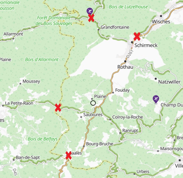 Le col de Saales et le col du Donon, les deux autres axes de passage vers les Vosges, sont également surveillés par ce type de caméra. Les enregistrements ont été saisis par les enquêteurs. Enfin, une caméra au niveau du tunnel de Schirmeck a permis d'enregistrer les passages en direction de Strasbourg.