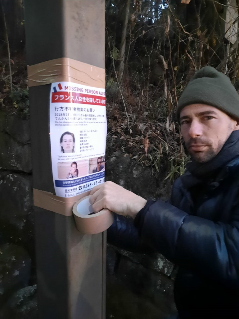 Il espère relancer l'enquête et savoir enfin ce qui est arrivé à sa sœur. Quatre ans après la disparition de Tiphaine Véron, son frère Damien est de retour à Nikko au Japon. C'est la première fois depuis 2019, les frontières étaient jusqu'ici fermées à cause de la Covid. Il remue ciel et terre et arpente la région pour tenter de découvrir la vérité. Recherche sur le terrain, affichage, échange avec les habitants constituent l'emploi du temps de Damien Véron depuis son retour à Nikko.