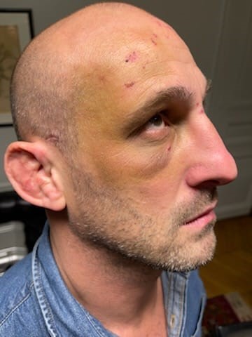 "J'ai de multiples contusions à la tête, des trous dans la tête, je me suis fait arracher les cheveux à plusieurs reprises, décrit-elle. J'ai un œil au beurre noir, l'autre œil cogné, j'ai une fracture du nez. J'ai l'habitude du combat, mais là j'ai vraiment cru mourir. Je me suis fait cogner à coups de poings, il m'a pris la tête et me l'a cognée contre le sol, il a essayé de m'étrangler. J'ai réussi à me dégager de lui parce que je me suis dit 'si tu ne sors pas de chez toi, t'es morte'".