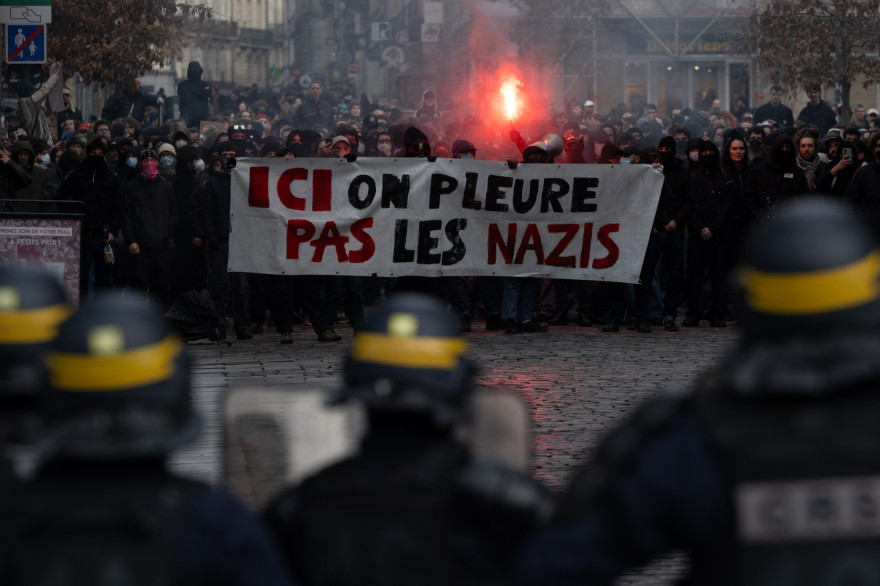 Des centaines de personnes, vêtues de noir pour la plupart, se sont rassemblés place Jean-Jaurès, point de départ de la marche blanche en hommage à Quentin Deranque. Pour le moment, l’opposition se fait depuis les balcons.