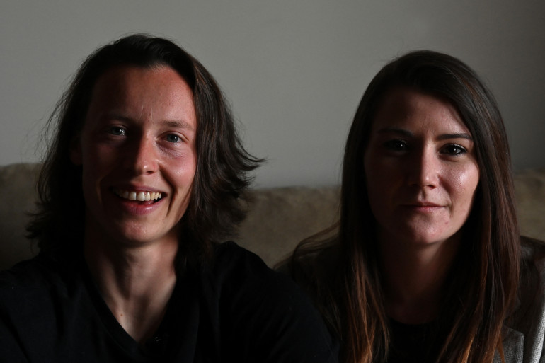 La joueuse de football Pauline Peyraud-Magnin (à gauche) et sa compagne Camille Nell, en 2021.