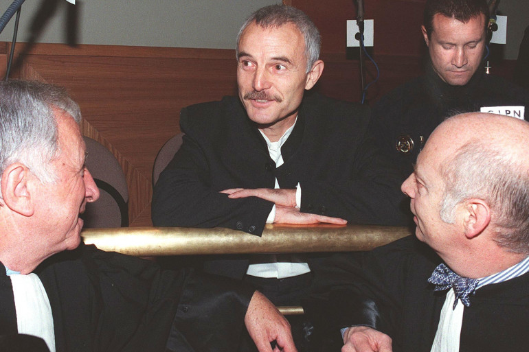 François parle avec ses avocats au tribunal d'Angoulême le 16 février 1998