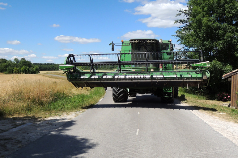 Le plus difficile dans la moisson c'est d'aller d'un champ à un autre avec une machine plus large qu'une départementale.