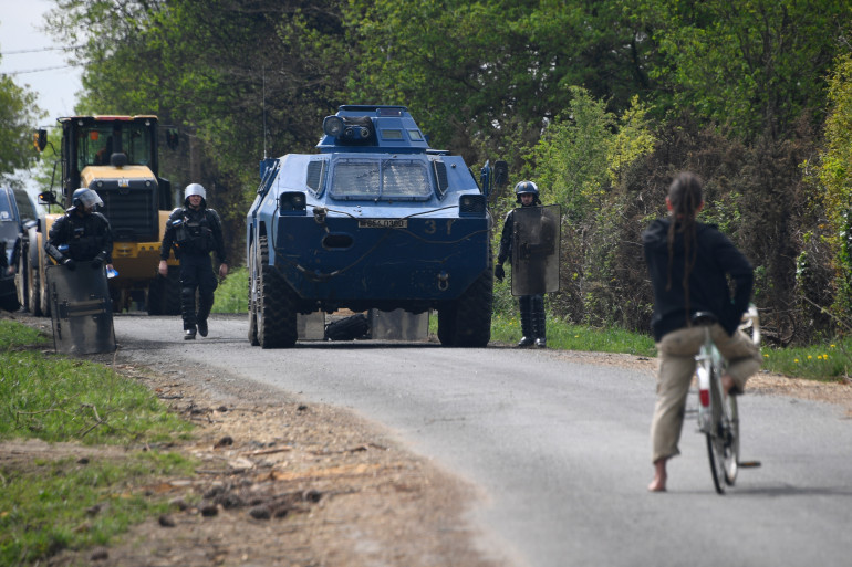 Un véhicule blindé engagé à Notre-Dame-des-Landes, le 23 avril 2018