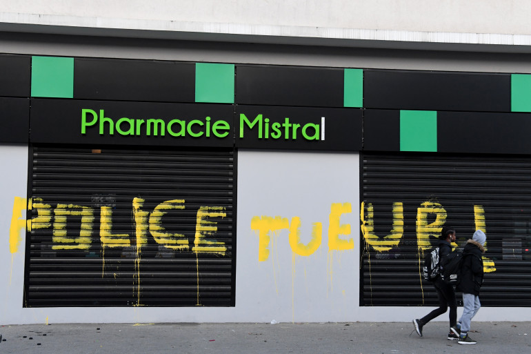 Une pharmacie taguée dans le quartier du Mistral, à Grenoble