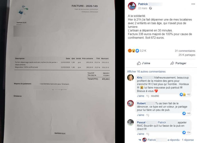 mésaventure sur Facebook, photo de la facture à l'appui.
