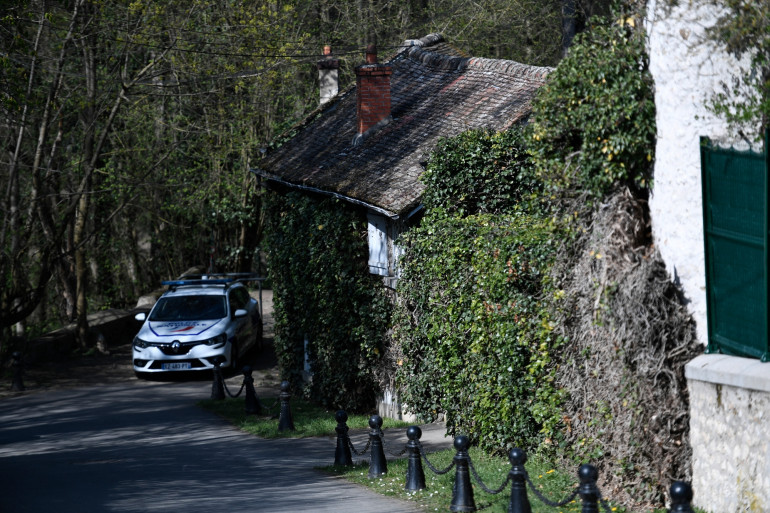 Une voiture de police stationnée devant le domicile de Bernard Tapie