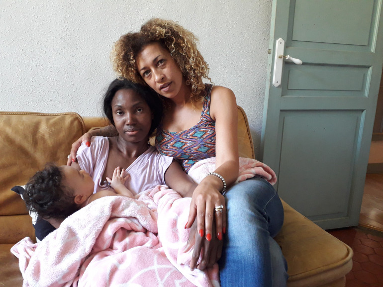 Léonie, son bébé Louna, et Sabah (à droite), qui a recueilli la famille.