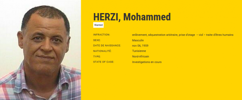 Mohammed Herzi, 61 ans, est soupçonné par les autorités maltaises d'enlèvement, séquestration arbitraire, prise d'otage, viol et traite d'êtres humains. Selon le descriptif d'eumostwanted.fr, le suspect aurait promis à une femme rencontrée en Italie de lui trouver un emploi à Malte. Après l'avoir emmenée, la victime a été enfermée dans un appartement, violée et battue, avant que l'homme ne lui demande de rembourser son voyage après que la victime a tenté de s'enfuir. Alors que le suspect voulait la prostituer, la victime a réussi à s'enfuir après cinq jours de séquestration. Le suspect s'est lui enfuit de Malte.