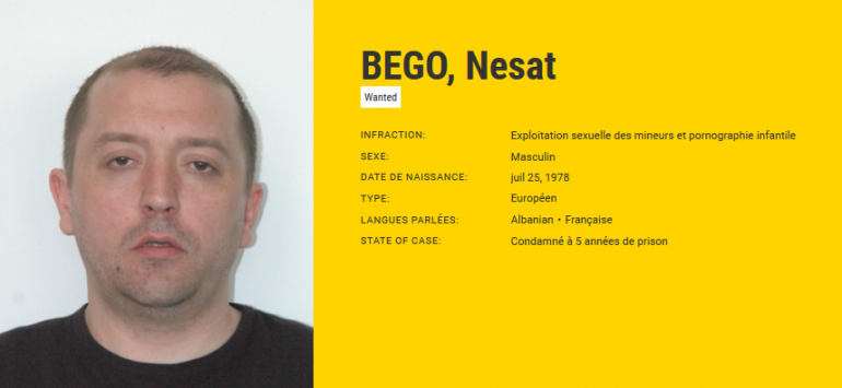 Nesat Begot, 42 ans, a été condamné à 5 ans de prison au Luxembourg après avoir commis un attentat à la pudeur avec violence ou menace contre un enfant de moins de 11 ans. Le fugitif parle français et albanais, selon Europol.