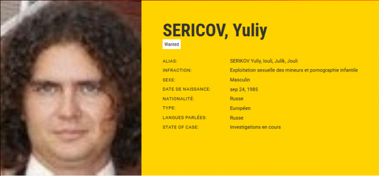 Yuliy Sericov, 35 ans, est accusé de pédopornographie. Selon sa fiche, 5.701 documents pédopornographiques ont été retrouvés sur un ordinateur lui appartenant à Chypre.