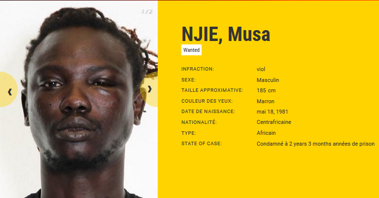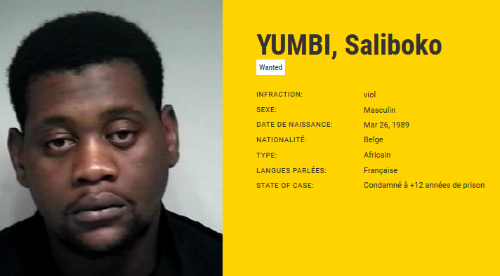 Le Belge Saliboko Yumbi, 31 ans, a été condamné pour deux viols. Selon sa fiche, il a abusé d'une femme à plusieurs reprises avec un autre homme en 2014 après l'avoir suivie jusqu'à son domicile. Il a été condamné pour cela à 4 ans de prison. En 2016, il a violé une autre femme qu'il a menacée avec un couteau et à qui il a brûlé la poitrine. Il a été condamné pour cela à 7 ans de prison. Le fugitif a également été condamné à 20 mois de prison pour des délits liés à la drogue et à 20 mois de prison pour des actes de violence. Il est considéré comme "dangereux".