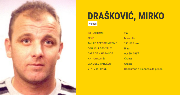 Mirko Draskovic, 53 ans, est recherché après avoir été condamné à 3 ans de prison pour un viol, selon Europol.
