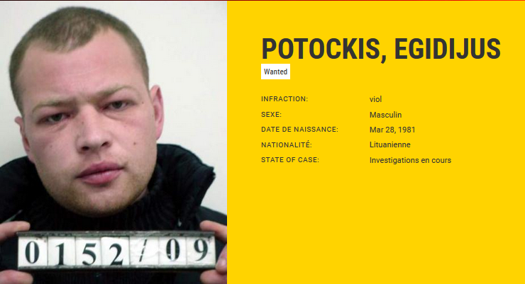 Egidijus Potockis, 39 ans, aurait violé à trois reprises une personne avec deux complices. Tous étaient sous l'emprise de l'alcool, rapporte Europol.
