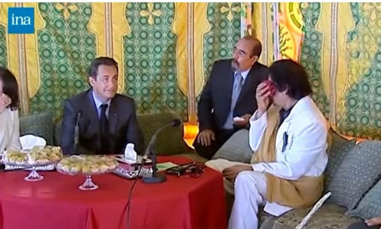 ouvrir crédits photo Mouammar Kadhafi et Nicolas Sarkozy en Libye, juillet 2007