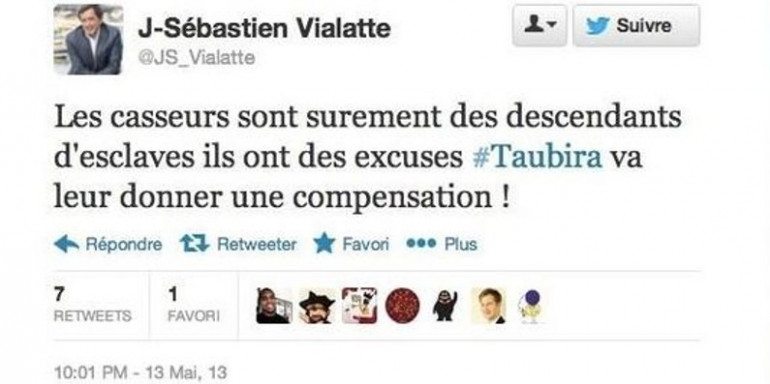 Le député UMP du Var Jean-Sébastien Vialatte a été condamné ce vendredi 19 septembre 2014 à 2.000 euros d'amende et 4.000 euros de dommages et intérêts par le tribunal correctionnel de Paris pour un tweet qui s'en était pris aux "descendants d'esclaves".