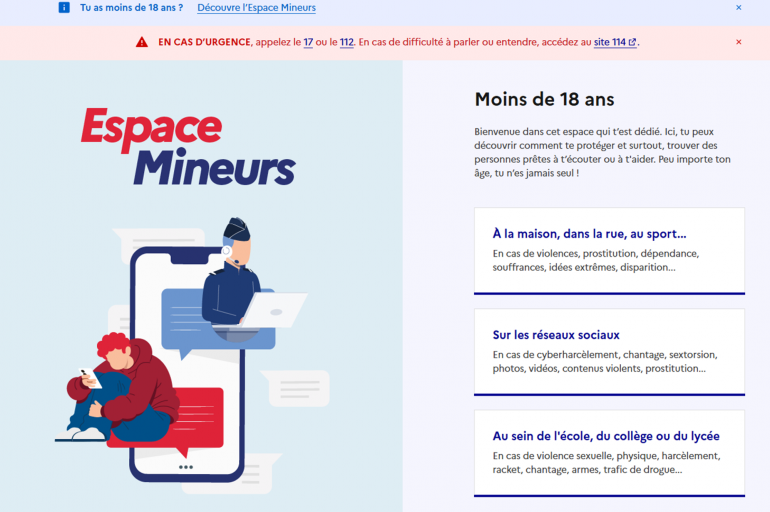 "Il s'agit d'un espace dédié aux moins de 18 ans, avec un tchat, des contenus spécifiques et adaptés pour les orienter lorsqu'ils sont victimes ou témoins de violences, d'agressions, ou d'addictions", a expliqué à l'AFP le commissaire divisionnaire Stéphane Lapeyre, chef de la division d'accueil du numérique.