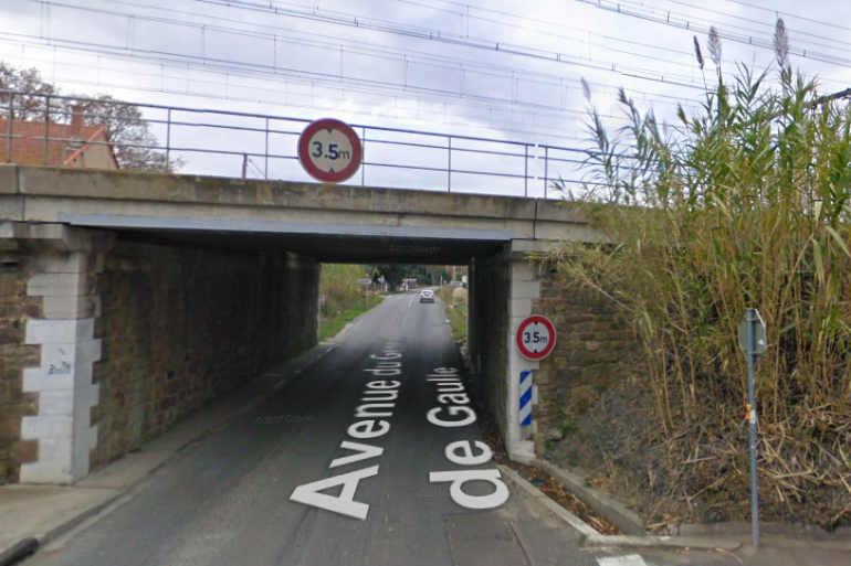 L'accident s'est produit sous ce pont SNCF, à Elne (Pyrénées-Orientales).