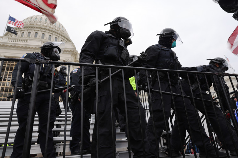 Les forces de l'ordre américaine, lors de l'intrusion de manifestants pro-Trump au Capitole, le 6 janvier 2021