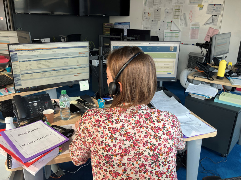 Je vous emmène d'abord dans le cœur du réacteur, à la permanence famille. Deux magistrates, casques micros sur la tête, traitent les gardes à vue les déferrements et répondent toute la journée aux enquêteurs. Près de 60% des appels concernent des violences conjugales. "Si tu fais ça, je te bute, il le reconnaissait ça ?", pianote ainsi une magistrate. "J'ai vu le casier, il est assez impressionnant en effet, oui. Il y a un œil au beurre noir, d'accord".