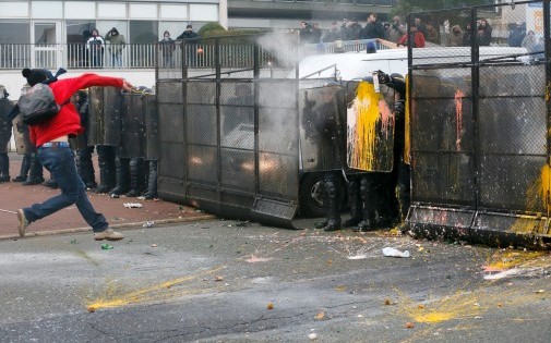 Les CRS font face à des jets multiples des manifestants de l'usine d'Amiens-Nord en mars 2013 (photo d'Archives).