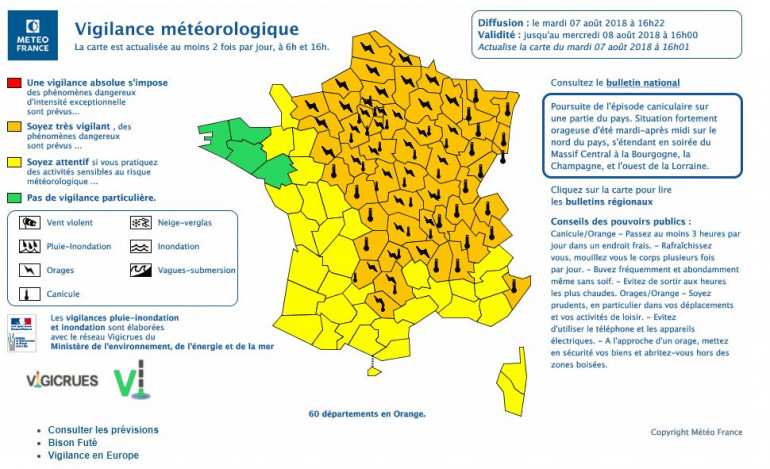 60 départements sont placés en vigilance orange ce mardi 7 août