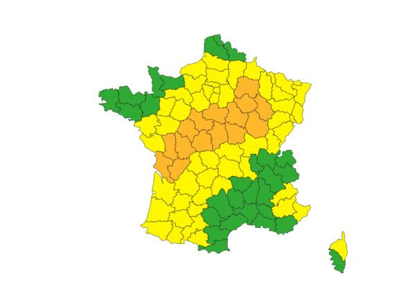 "Les orages les plus violents sont attendus cet après-midi du Poitou-Charentes au Centre et gagnent ensuite la Bourgogne et la Champagne", prévient Météo France qui précise que "des orages localement forts sont néanmoins possibles sur les départements limitrophes, placés en vigilance jaune".